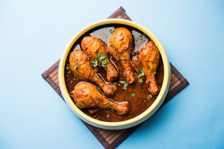 Tender chicken cooked in a spicy, tangy sauce with garlic, vinegar, and aromatic Indian spices..