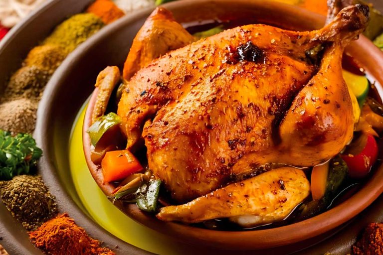 Roasted chicken marinated in fragrant Moroccan spices, garlic, and lemon for a warm, aromatic flavor.